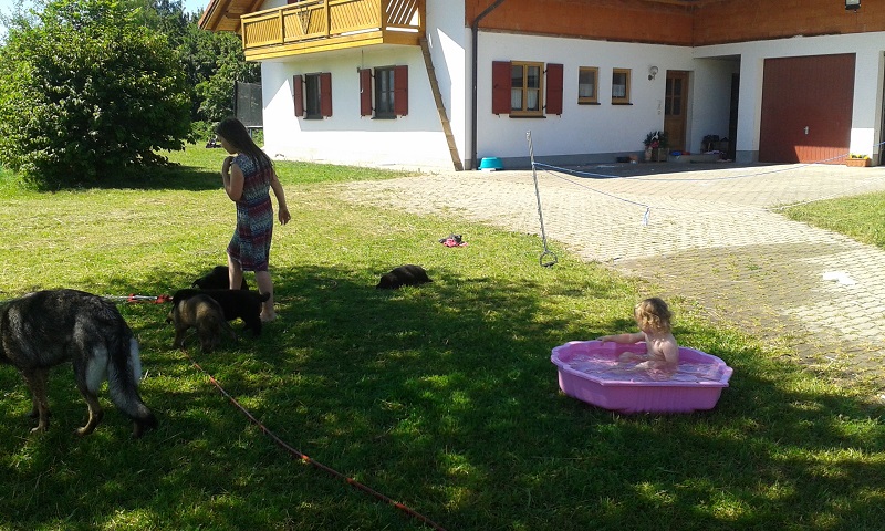 12.6. Die Welpen werden immer mobiler und erkunden die Umgebung. Leider ist das Wetter furchtbar und es regnet die meiste Zeit, deswegen nur kurz draussen gewesen