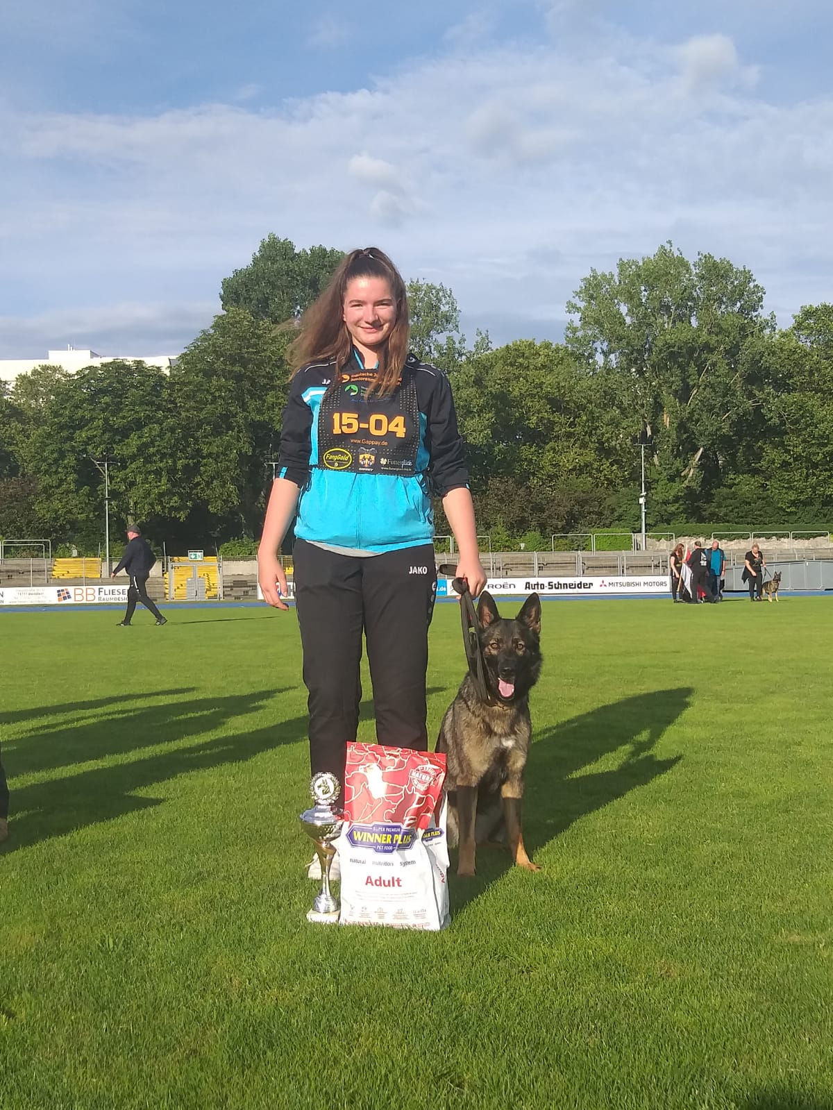 30.4.23 Sophia erreicht mit Cassie vom Jakobsfeld bei der Landesgruppenjugendmeisterschaft in Höchstadt/ Aisch in der IGP2 94/94/98 ges. 286 Punkte ist ist somit Landesgruppenjugendsiegerin und Tagessiegerin und ist qualifiziert zur Deutschen Jugendmeisterschaft