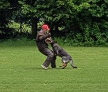Im Schutzdienst starkes belästigen beim verbellen und beim Seitentransport 2x um den Helfer gekreist.