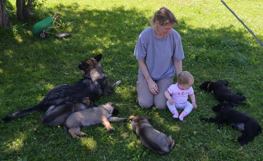 Der eigene Wurf war noch das i-Tüpfelchen zu dem Ganzen. Es hat wahnsinnig viel Spaß gemacht mit den Kleinen und auf unserem Hof in Alleinlage sind beste Aufzuchtbedingungen vorhanden!