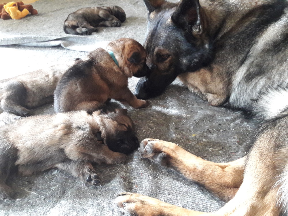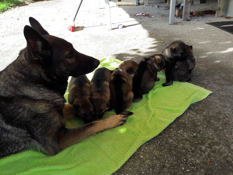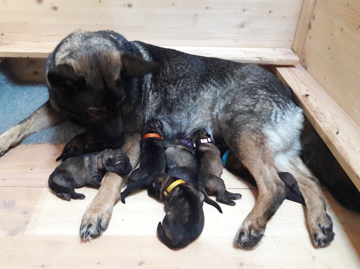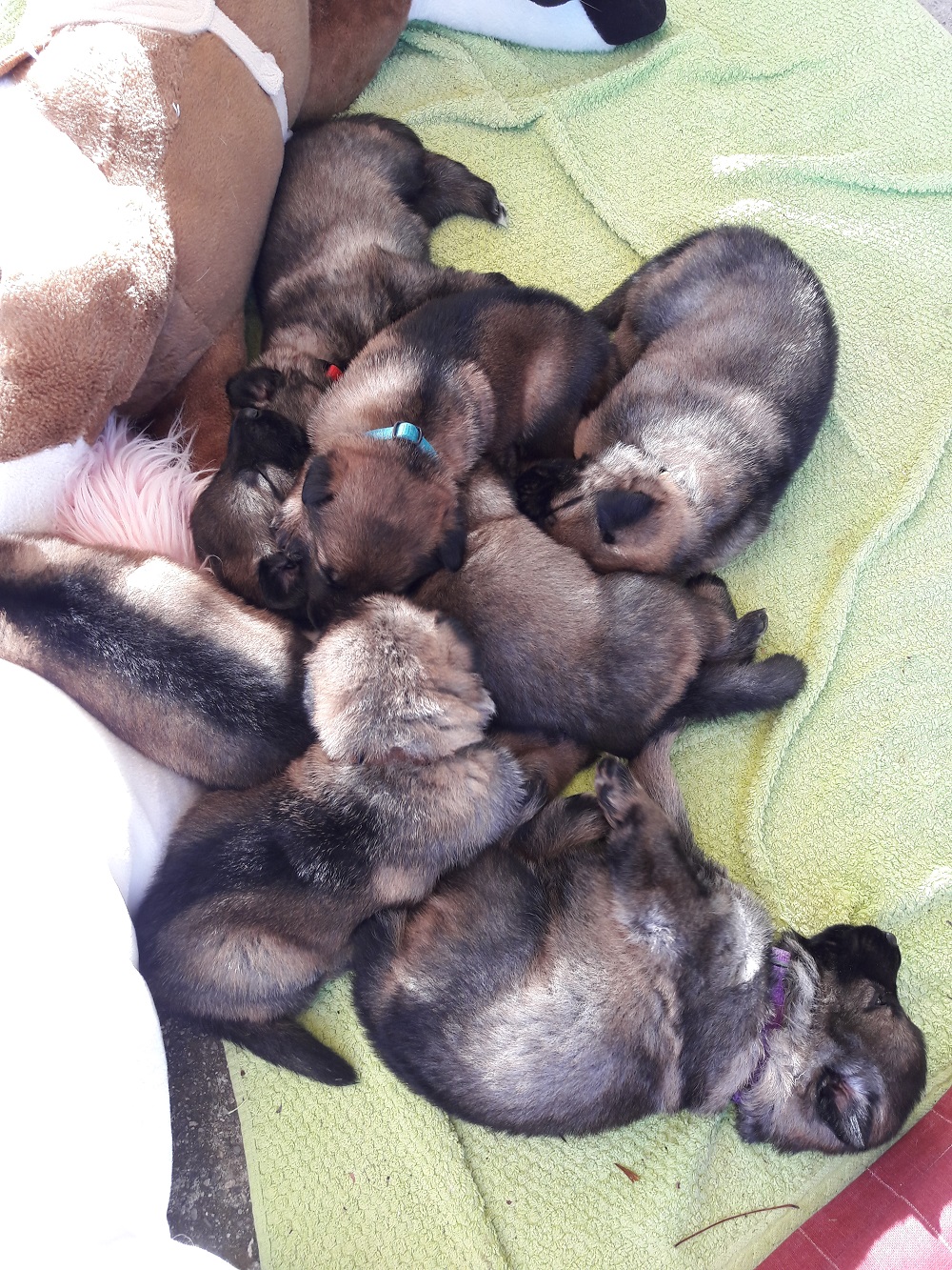 Elli hat am 21.9.17 völlig problemlos 2 Rüden und 5 Hündinnen zur Welt gebracht!